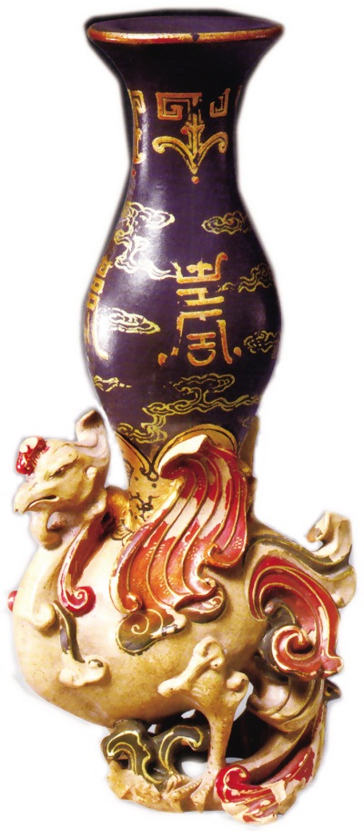 清代宮廷紫砂文房用品,多由內廷出樣在宜興燒制后,運到宮廷造辦處進行第二次加工彩繪,也有少部分是宜興地方巡撫按年例進貢的物品。雍正、乾隆時期宮廷造辦處漆作加工繪制的宜興描金彩繪大筆筒,畫稿均出于宮廷畫家之手,既有宮廷用器的富麗典雅又充滿濃郁的書卷氣。獨一無二的雍正描金漆紫砂云蝠澄泥硯更是紫砂文房中的極品。乾隆時造辦處在宜興批量定制的有乾隆御題詩的宜興澄泥套硯,是皇帝最喜愛的文房用硯之一。舊藏品中還有水丞、水盂、仿生文玩等紫砂小品控古搜奇,匠心獨運,代表了清代紫砂御用文玩的高超制作水平。著名紫砂能手陳鳴遠,擅長制作文玩清供,他制作的硯滴、水丞,頗有雅意,不僅受到文人的欣賞,也得到宮廷的青睞。(□王健華 故宮博物院研究員2007-07-13)
