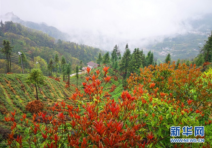 四月,三峽茶旅小鎮(zhèn)萬畝茶園吐新綠,云霧繚繞美不勝收。新華網(wǎng) 張潘 攝