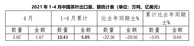 2021年4月中國(guó)茶葉出口情況簡(jiǎn)報(bào)