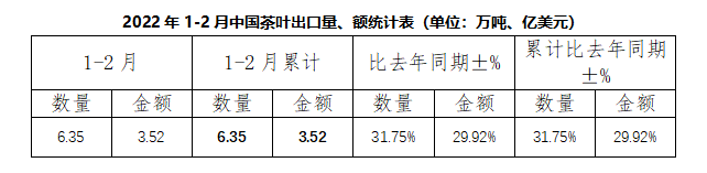 本文標題:再迎開門紅——2022年1-2月中國茶葉出口情況簡報 - 茶葉新聞_中國茶葉新聞_國際茶葉新聞