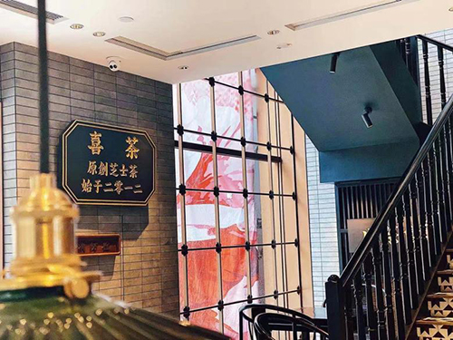 喜茶起源于江門,成長于廣東。將新茶風(fēng)帶給世界的同時,喜茶仍在回頭凝視自身中流淌的廣府文化基因。喜茶整合永慶坊傳統(tǒng)建筑與廣東茶文化特點,讓新與舊達(dá)到平衡,使店面擁有現(xiàn)代藝術(shù)也有傳統(tǒng)老廣氣息,并將老廣州元素融入空間:三雕一彩一繡,青石磚,銅板浮雕,滿洲窗、趟櫳門、騎樓街,讓嶺南文化在新式茶文化中靈動延續(xù)。