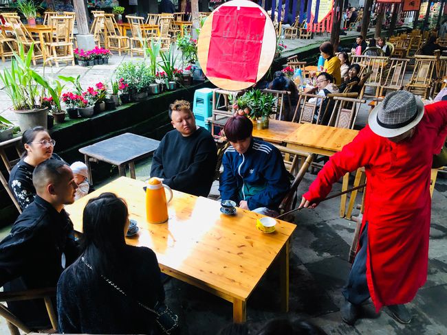老周的生活,從一杯蓋碗茶開始,喝一口茶,跟客人擺會(huì)龍門陣,張家長(zhǎng)李家短,可以消磨一天的時(shí)光。上過央視,經(jīng)常接受電視、報(bào)紙采訪的老周,已經(jīng)成了古鎮(zhèn)的“網(wǎng)紅茶倌”。不少游客慕名到他的茶館來,喝杯蓋碗茶,給他拍照、寫生,聽他講古鎮(zhèn)的前世今生。